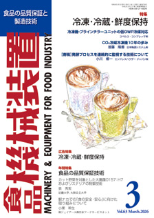 唯一の食品機械装置に関する技術資料を掲載し、国内はもとより海外でも購読されている月刊誌です。生産技術に直結した技術誌として、食品工場のレイアウトから自動化の問題、各種機械装置の特性、機械設計上の問題及び保守管理、更には最新の技術情報に関する技術的な論文の掲載に重点を置き、食品を生産するための実際的なデータを中心に、直接製造技術者に役立つよう編集方針としております。特に食品製造における「作り込み」技術として、年間を通じて毎号「食品の品質保証技術」記事を取り上げ、大変ご好評を頂いております。