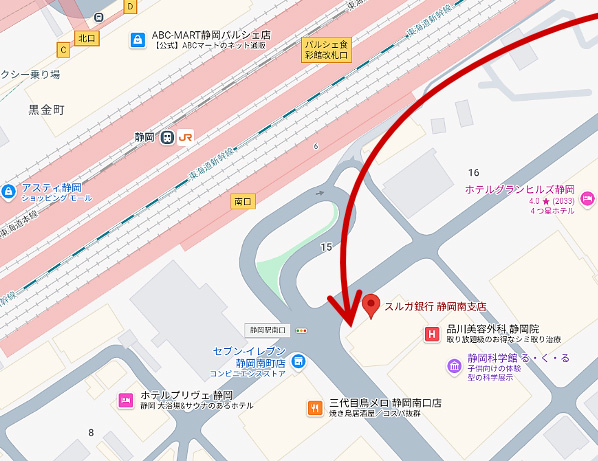 JR『静岡』駅 南口《スルガ銀行 静岡南支店》付近(集合場所地図ご参照)