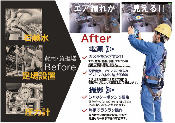 今回のセミナーでは、エア漏れを可視化する装置「エアリークビューアー」を活用し、食品工場における省エネおよび カーボンニュートラル対策の進め方をご紹介します。